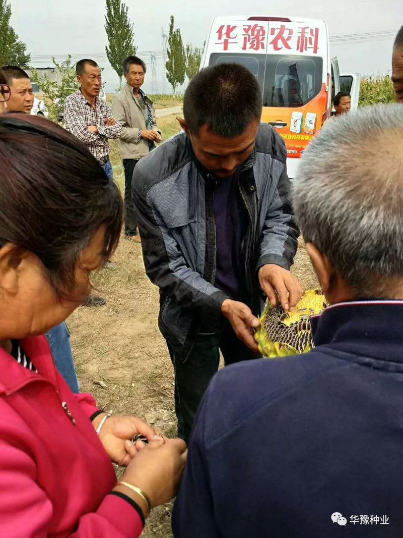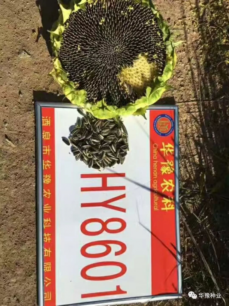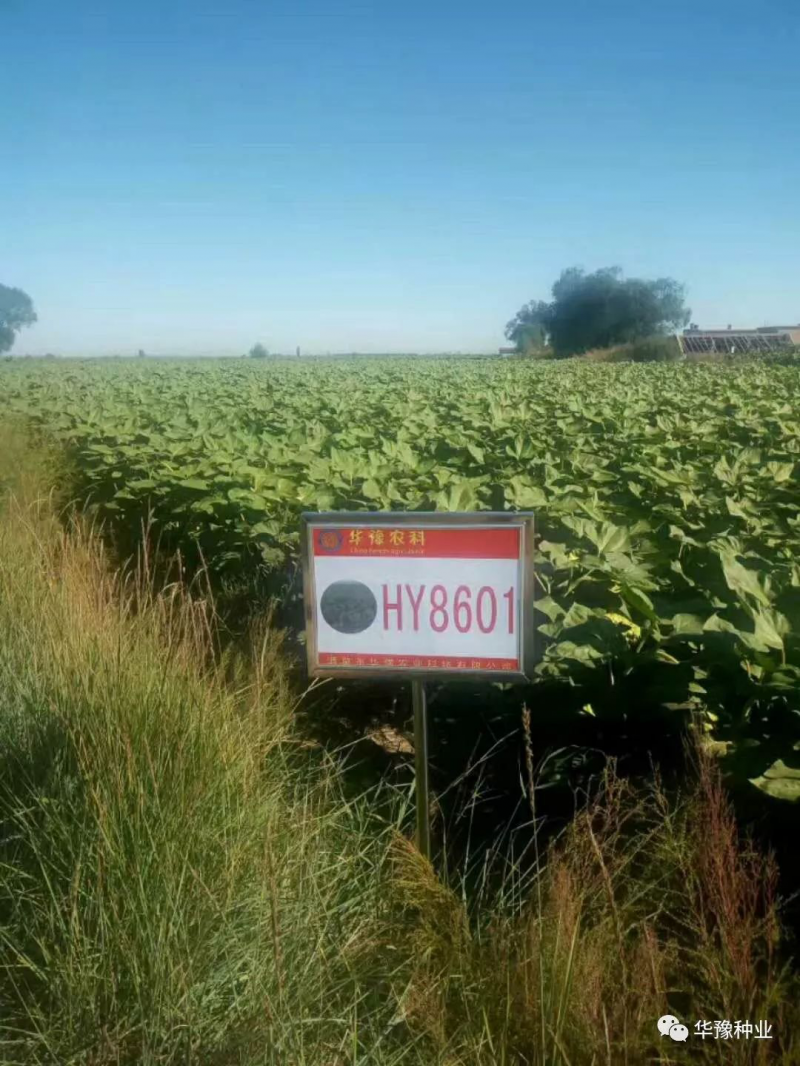 华豫HY8601瓜子粒型好,皮毛黑亮,花盘直径35厘米左右,花粉多,结实率好,产量高,增产潜力大。