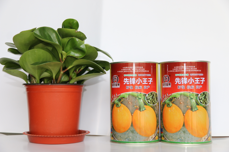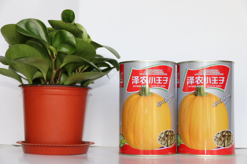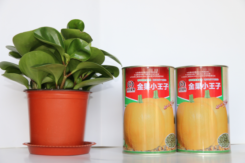 “金果小王子”是甘肃民勤泽农种业有限公司西葫芦研究中心依据现代生物遗传理论,在金果系列无壳南瓜基础上进行培育的创新三元杂交南瓜种,生育期105天左右,蔓长60CM,座瓜节位极底3-4节,结瓜整齐一条线,瓜型一致,叶片圆型,叶色深绿,果实高圆形,皮硬纯黄瓜,中型果实,种子籽小,千粒重120g左右,800g籽粒数可达6600粒左右,商品千粒重150g左右,抗病性状突出,商品籽仁墨绿,色泽美观,商品性状好,在栽培技术,水肥条件好时,可达到200kg以上,具有产量稳定,适应性广等特点。