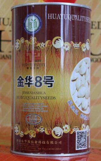 【品种主要性状】该品种蔓生,植物生命力强,不早衰,易结果。抗病抗烂瓜能力较强,籽粒饱满修长,瘪籽、翘板极少,外形美观,商品价值高,深受炒货市场欢迎。产品极为畅销。供不应求,售价持续走高。为提高产量,配有授粉苗,瓜形瓜色差异属正常情况。密度高水肥田亩保苗2200株左右,中上等肥力田亩保苗2600株左右。生育期在100天左右,需有效活动积温2100℃以上,适合排水良好的坡岗地种植。