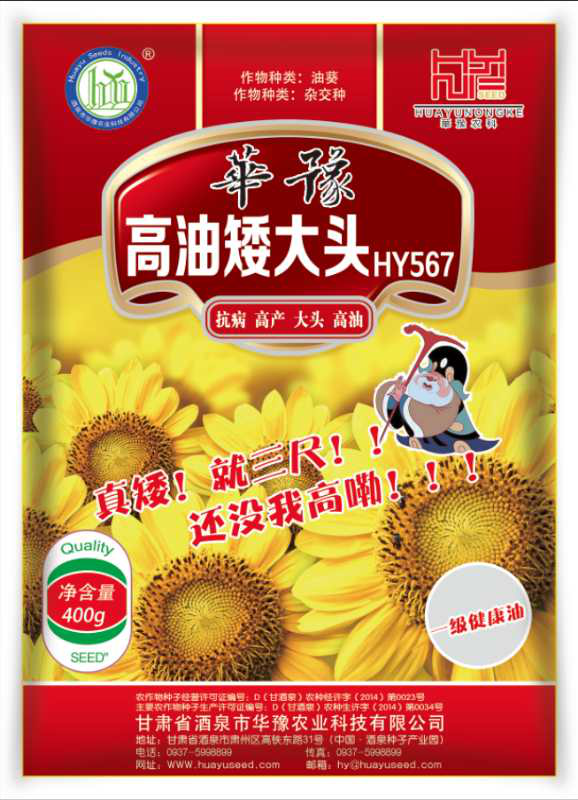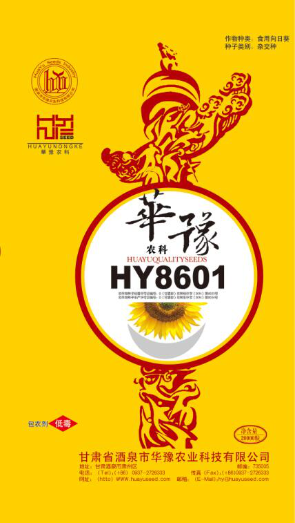 品种主要性状 生育期105天,株高1.6米至1.8米,叶片32片,花盘平均直径30公分左右,弯头45℃左右,籽粒长度3公分,亩留苗:新疆,甘肃2200株。巴盟河套地区1500株。蒙东及东北区域1200株。水肥条件合适的情况下亩产550斤,商品籽粒特长,耐脱皮,皮毛漂亮,商品性极佳,卖价高,抗倒伏,土壤适应性广。