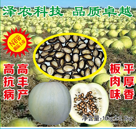 【品种适宜种植区域】 甘肃、内蒙、新疆(伊犁、昌吉、石河子、奎屯、北屯、塔城) 【种植季节】4月15日-5月30日 检测日期:2019年2月 质量保证期:12个月 产地检疫证明编号:6209212018003843 【使用说明】属中熟品种,生长快,易坐瓜,全生育期110天左右,叶裂缺深、蔓短、果实近圆形,千粒重290-310克左右。籽粒中间龙眼大而白,翘板麻板少。适应性强,产量高。 【主要栽培措施】播种根据当地的气候条件适期播种,亩播量4-4.5公斤,亩带底肥15-20公斤,苗期要蹲苗;苗期要做好田间管理,促弱控旺。座瓜后要加大肥水管理,施肥要做到氮、磷、钾配合,中后期可滴施磷酸二氢钾1-2公斤/亩增加千粒重,中后期滴水量不易太大,防止死秧。收获前要求人工或机械摘瓜后晒7-10天后脱粒。 【适应性】该品种生长稳健,抗逆性好。