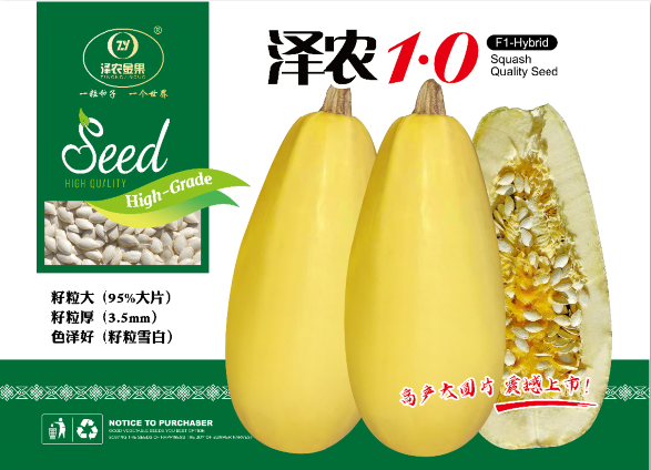 “泽农神奇”是甘肃·民勤泽农种业有限公司西葫芦研发中心,利用国内外优选材料精心培育的西葫芦最新高产品种,生商期105天,生长强势,出苗整齐一致。节间短,不短蔓,单株可结瓜1-4个,幼瓜瞰绿色,长圆筒形,老熟瓜淡黄色,瓜皮坚韧不易软腐,籽腔大,瓜籽千粒种170克左右,增产潜力大,商品均匀一数,一般高产180公斤左右,水肥和管理条件优越亩产可达260公斤左右,是目前将用西葫声炒货最理想的换代产品。