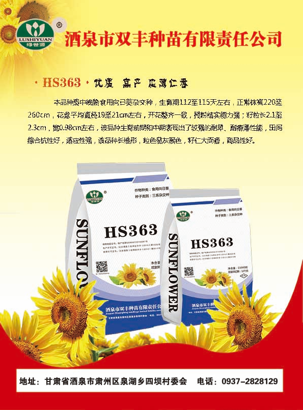 该品种属中早熟食用向日葵杂交种,河套地区生育期98天左右,株高175厘米左右,叶片数为26片左右,花盘直径24厘米左右。黑底白边,抗叶霉病、霜毒病、枯斑病等,籽粒饱满,植株整齐,商品性好。